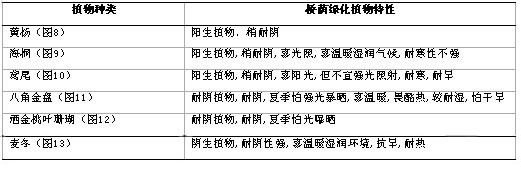 这些问题的解决是实施高架道路垂直绿化的关键。因高架道路承重能力的要求, 槽内栽植土势必浅薄, 而川流不息的车辆排放出大量的废气及酷暑当头、寒风尽吹的恶劣土地条件也给植物品种的选择增加了局限性。因此, 高架道路两侧种植的植物应具备以下特点: