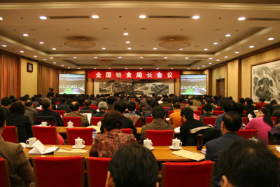 1月3日-4日,经国务院批准,国家粮食局在北京召开全国粮食局长会议。曾培炎、回良玉副总理对会议发来贺信和作出重要批示。国家粮食局党组书记、局长聂振邦同志作了题为《深入学习贯彻党的十七大精神 努力做好粮食流通工作 确保国家粮食安全》的工作报告。会议的主要任务是,深入学习贯彻党的十七大精神,以科学发展观为指导,认真落实中央经济工作会议、中央农村工作会议的部署,总结2007年粮食流通工作,分析当前面临的新形势,研究部署2008年粮食流通工作,切实保障粮油市场稳定和国家粮食安全。