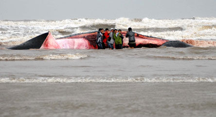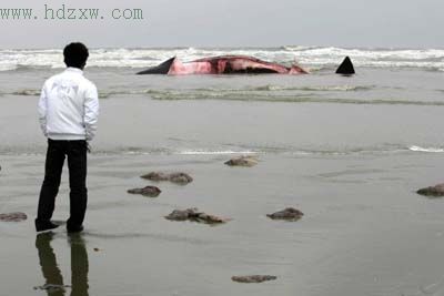 昨日报道:长16米重20吨巨鲸搁浅福建海滩(组图)