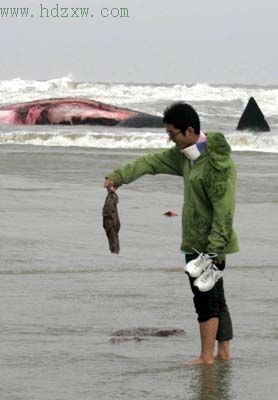 昨日下午,在松下镇首祉村记者几经努力后找到了负责鲸鱼标本制作的台江区义洲教具厂郑茂财厂长。记者见到郑厂长时,他正不停地接听电话。受省海洋渔业执法总队委托,郑厂长已经在松下呆了两天,他要负责组织人员,赶在鲸鱼尸体完全腐烂前,在最短的时间内将鲸鱼剖解并打捞上岸,忙得不可开交。
