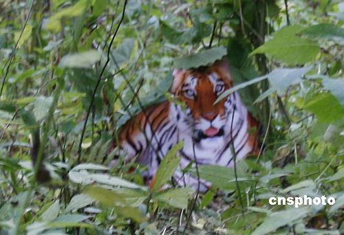 资料图片:陕西镇坪县城关镇文彩村村民周正龙自称2007年10月3日下午在文彩村神洲湾拍摄到的野生华南虎照片。 中新社发 周正龙 摄