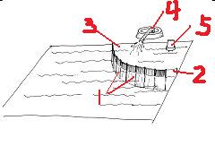 (B)支撑桩位于池塘边 (C)支撑桩位于池中