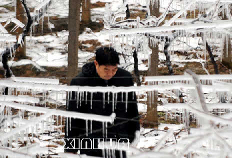 冰雪灾害造成郴州农业损失严重。2月4日,湖南郴州苏仙区一位村民从结冰的葡萄架下走过。1月13日以来,湖南郴州地区遭遇50年来最严重的冰雪灾害,郴州农业损失严重。据来自郴州市政府的消息,此次冰冻天气导致郴州农作物受灾面积14.83万公顷。新华社记者赵众志摄