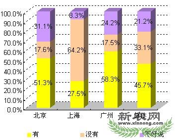 京沪穗三地的调查显示:平均96.7%的受访者认为这一年当中社会上就业形势有好转,2.5%的受访者认为这一年当中社会上就业形势没有好转,另有0.8%的受访者对此没有明确的看法。北京、上海地区的受访者中,认为这一年社会上就业形势能有好转的比例均达到100%;广州认为这一年社会上就业形势能有好转的受访者比例也达到90.0%,有7.5%的受访者认为这一年当中社会上就业形势没有好转,另有2.5%的受访者对此没有明确的看法。