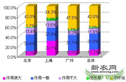 三地市民有近一半(49.3%)的人认为新的劳动合同法对保护劳动者的权益作用一般,上海持此观点的市民比例最大,达到了70.8%,北京、广州认为新法作用一般的比例分别为38.7%、40.8%。