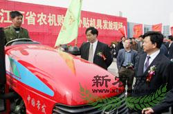 本网讯:3月20日,全国暨江西省农机购置补贴启动仪式在南昌举行,农业部农业机械化管理司司长宗锦耀等有关领导向江西省首批获得购机补贴的农户发放了补贴机具钥匙,标志着全国农机补贴实施工作已经全面展开。农业部要求各地抓紧组织实施购机补贴政策,确保补贴机具在春耕生产和灾区恢复生产中发挥作用。