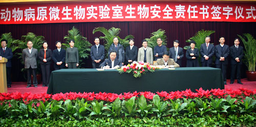 会议期间,农业部兽医局与奥运会举办城市所在省畜牧兽医部门签署了动物病原微生物实验室生物安全监管责任书。北京市农业局、山东省畜牧兽医局还与所在省(市)有关畜牧兽医科研技术单位负责人签署动物病原微生物实验室生物安全责任书。各省(自治区、直辖市)畜牧兽医部门、动物卫生监督机构、兽药监察机构,以及农业部有关司局、中国农业科学院、中国动物疫病预防控制中心、中国兽医药品监察所、中国动物卫生与流行病学中心和中国农业大学的负责同志参加了会议。