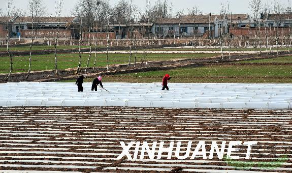 资料图片:4月1日,在宁夏永宁县李俊镇,农民在田间劳作。新华社记者刘泉龙摄