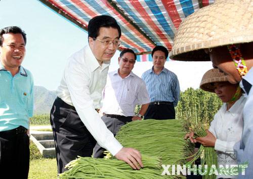 在乐东县尖峰镇山道村田洋瓜菜基地,胡锦涛同种植豇豆的黎族村民黄正光夫妇聊了起来:承包了多少亩地?豇豆收成怎么样?一斤能卖多少钱?一年能有多少收入?……