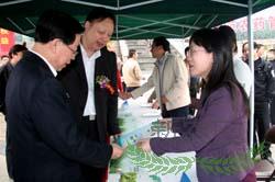 危朝安在活动现场了解新编发的宣传材料和展示的实物产品等情况 |