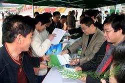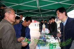 专家现场解答农民朋友的咨询、企业向农民发放产品宣传资料 |