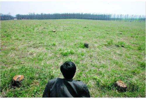 在一林区边沿,防护网内约百余亩的草地上没一棵树木,一个个树桩犹如棋子般排列在空旷的草地上,“这块地,连同边上的林区,以前是一片洋槐树林,每年春天一到,槐花开后,这一片子香得很,但从去年至今就被弄成现在这个样子了。”一村民气愤地说。