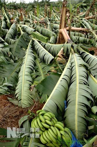 4月19日,海南省文昌市一处香蕉地的香蕉树被拦腰折断。