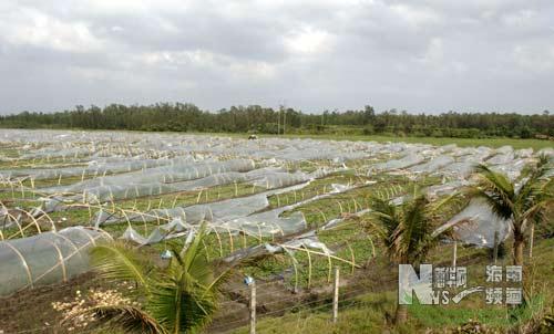 4月19日,海南省文昌市一处农作物的塑料大棚被台风摧毁。