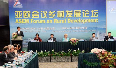 本网讯:4月22日至24日,亚欧会议乡村发展论坛在北京召开,旨在促进亚欧会议成员加强乡村发展领域的政策对话,相互借鉴乡村发展的政策措施和经验,促进亚欧国家开展乡村发展方面的交流与合作。开幕式上,中国农业部副部长牛盾、立陶宛农业部副部长佐斯塔蒂尼、菲律宾土地改革部副部长玛杜罗分别代表中国、欧洲国家和亚洲国家致辞,亚欧会议35个成员的有关官员和专家120多人参加了论坛。