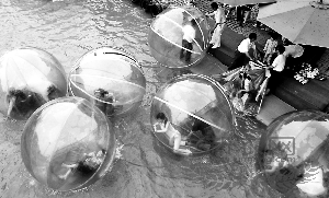 昨日,洋人街惊险刺激的“空中飞人”吸引了不少游客。