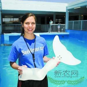 最终,世界顶尖义肢专家、来自美国的凯文临危受命。此前,除了为人设计假肢之外,他还曾为小狗、驼鸟甚至鸭子研制过义肢。凯文回忆道:“为此我足足花费了一年半的时间。对人而言,我们通常只需要在他们身上安装一个‘插座’,然后插入一根长长的实心骨头。这个‘插座’无须全方位活动。可是对于一条海豚,这个‘插座’必须随着整条脊骨而运动。”