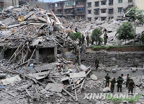 这是5月13日拍摄的四川省北川县县城被地震摧毁的建筑物。新华社记者陈燮摄