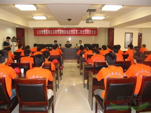 本网讯 为全面推进以死亡畜禽无害化处理和环境消毒为重点的灾区动物防疫工作,5月24日上午,四川省畜牧食品局组织召开部省联合动物防疫应急分队第二批出征动员大会,组织动员107人组成的4支部省联合动物防疫应急分队,分赴绵竹、什邡、都江堰、彭州重灾区深入开展动物防疫工作。