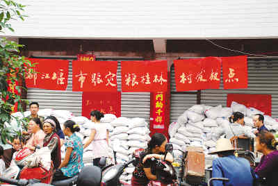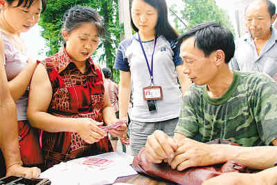 28日,桂林村村民在领取补助金。记者陈娟摄