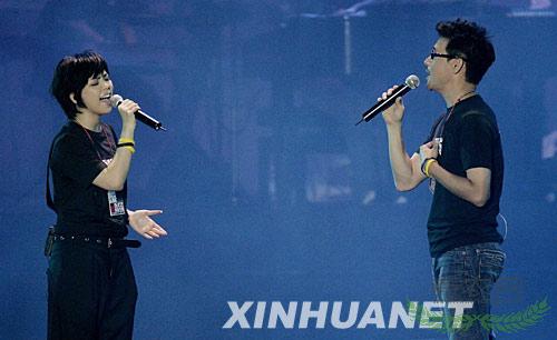 6月1日,歌手张惠妹(左)和张学友参加义演。当新华社记者周磊摄