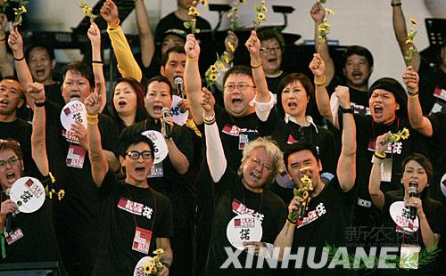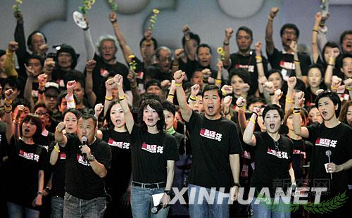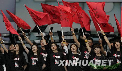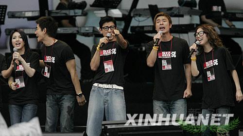 当日,香港举办“5·12关爱行动”大型义演,为四川地震灾区筹款,来自内地和港澳台的500多名演艺界人士参加赈灾义演。新华社记者周磊摄