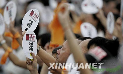 6月1日,艺人和观众一起为四川汶川大地震遇难同胞默哀。