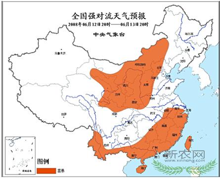 中央气象台12日六点钟继续发布强对流天气预报: