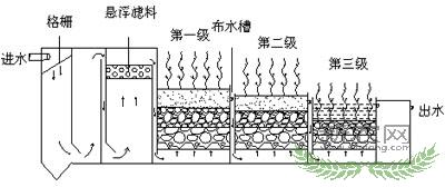 (3)自然处理技术:包括人工湿地、土地处理、稳定塘等处理技术。也有采用厌氧反应装置和人工湿地组合系统,可以去除污水中的固体颗粒、有机质,还可脱氮除磷,同时杀灭病原体。