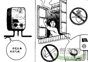 (6)使用沼气进行炊事和照明之后切记要关闭气阀,当室内发生沼气泄漏时要及时开窗通风排气,严禁点燃或开启明火;