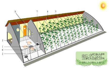 (2)北方沼气池、猪圈、厕所和蔬菜日光温室的“四位一体”生态模式;