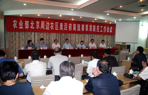 本网讯:为有效控制北京周边农区鼠害发生危害,为奥运安全提供有力保障,6月30日,农业部组织华北五省(市)在河北省张家口市召开北京周边农区奥运前期鼠害联防联控工作会议。会议强调,北京周边地区各级农业部门要在巩固前阶段工作成果的基础上,加大鼠害联防联控力度,进一步明确目标,突出重点,狠抓薄弱环节,切实加强鼠情监测和农田统一灭鼠工作,高度监控疫源地,加强地区间沟通协作,为奥运期间鼠害治理工作尽职尽责。