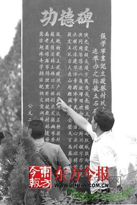 农民为市委书记立功德碑。张晓冬/图