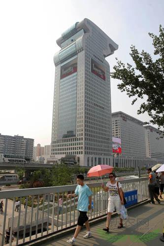在奥运核心区内,有一龙形楼盘,龙头高昂,龙尾略摆,造形非常的中国化,盘古大观的名字更显厚重。盘古大观共五栋楼组成,最高的龙头部分是商业楼,中间三栋则是公寓楼,龙尾则是北京惟一一家的七星级酒店。龙头顶部甚至有私人停机坪。