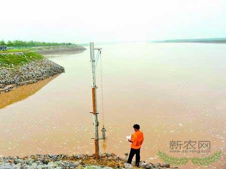 河务人员正在仔细测量黄河水位