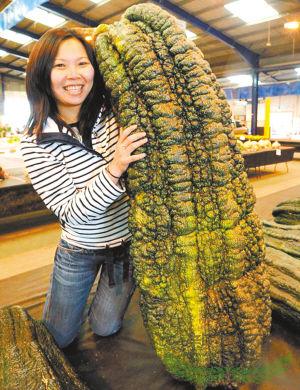 在今年英国举行的巨型蔬菜大赛上,各种体型硕大的蔬菜令人大开眼界,其中有两个“大家伙”还一举打破了吉尼斯世界纪录,它们分别是一个重达65公斤的西葫芦(如图)和一根长度近1米的黄瓜。