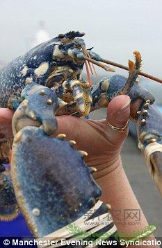 据英国《每日邮报》9月22日报道,英国马恩岛的渔民近日捕获到一只通体呈蓝色的龙虾,科学家表示这种蓝色龙虾出现的几率仅为200万分之一。