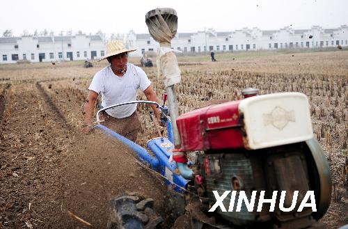 10月20日,通过“土地流转经营专业合作社”承包了420亩地的安徽省肥西县木兰村种粮大户靳仲本在田间劳动。(新华社记者陈晔华摄)