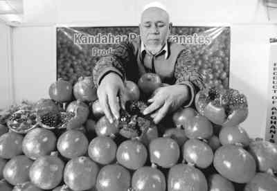阿富汗人在首都喀布尔举办的阿富汗国际石榴展上展示自己的石榴