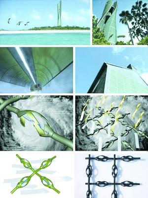 无数微型涡轮“编织”后形成纳米“气孔皮肤”,可以附在建筑物表面,与城市建筑融为一体。