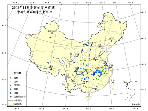 目前南方的冬油菜处于出苗至移栽期间(如图2),此时常会因遇低温而产生冻害。今年江淮南部、江汉南部和西南地区东部部分地区受前期阴雨天气影响,播种期偏晚,冬小麦和油菜苗情都较差,这次冷空气更易引起低温冻害,需提醒注意。要加强油菜的田间管理,适时中耕培土、重施有机肥,确保越冬作物稳健生长,以提高作物抗寒能力,避免冻害发生;土壤偏湿的地区要抓紧清沟理墒,促进作物恢复生长。