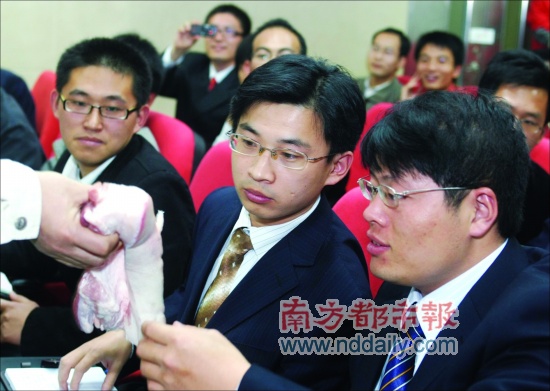 据该公司介绍,按最初的计划,公司只招收15名研究生,但吸引了1500名高材生应聘,公司才决定扩招至30人。经过多轮考核后发现,学生的素质都非常高,公司无法取舍,出于储备人材的考虑,又扩招了5人。因此总计招收35人,4人为女性。