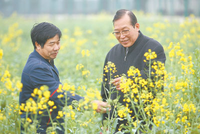 湖南农业大学官春云教授(右)主持的“湖南双季稻区早熟油菜品种选育与机械化生产技术研究与示范”项目取得突破性进展。