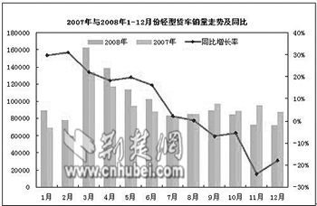 2008年,福田汽车、江淮汽车、东风汽车轻型货车的销售(不包括工程车)分别超过11万辆、10.8万辆、7.6万辆,位居国内轻货销量前列。