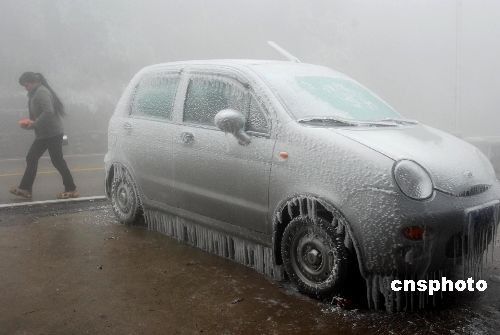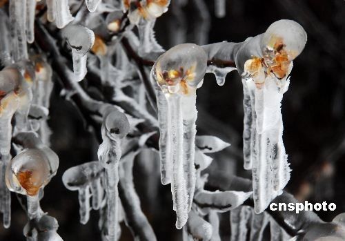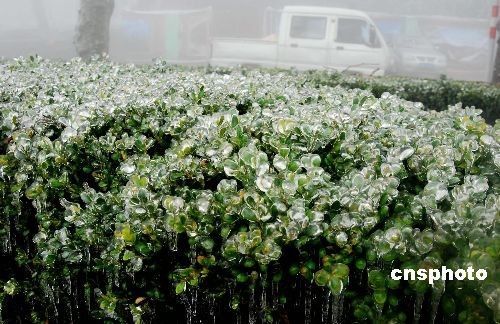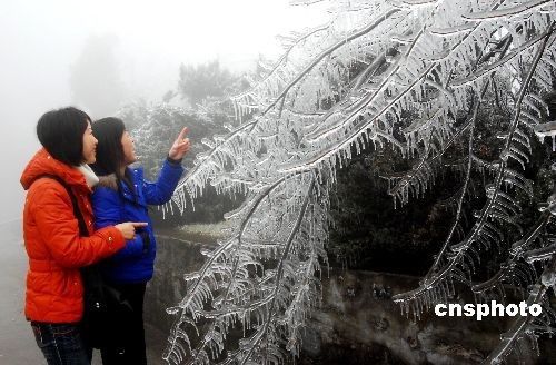 核心提示:三月一日,江西庐山出现冻雨现象并形成雨淞景观。满山树木千枝万叶裹上了厚厚的冰层,玲珑浸透晶莹闪亮。