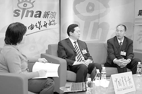 全国人大代表郭瑞民(中)、全国人大代表张全收(右)和本报记者就金融危机下返乡农民工就业问题,进行在线交流。