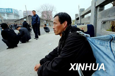 2009年2月10日,一位来自河南的农民工在福州一路边用工市场等待招工。他抵达福州7天了,由于对当地情况不了解,每天都来火车站附近的这一路边用工市场寻找工作。新华社记者 张国俊 摄