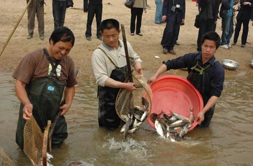 3月19日,在赣江南昌段,工作人员和渔民正将鱼苗放入赣江。当日,2000多公斤各类鱼苗被放入鄱阳湖流域的赣江南昌段水域。这是今年江西第一次渔业增殖放流活动。根据计划,今年江西将在鄱阳湖流域范围放流2亿多尾鱼苗。