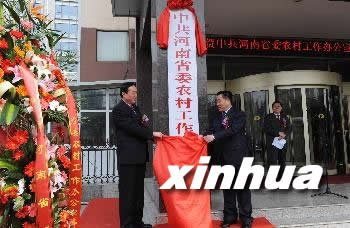 新华网河南频道3月23日电 (记者訾红旗)23日上午,中共河南省委农村工作办公室举行挂牌仪式,正式宣布成立。