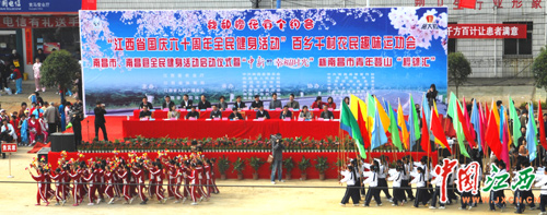 3月26日,江西省纪念建国六十周年“百乡千村”农民趣味运动会在南昌县启动。图为启动仪式现场。(江西网记者 邓小勇 摄)